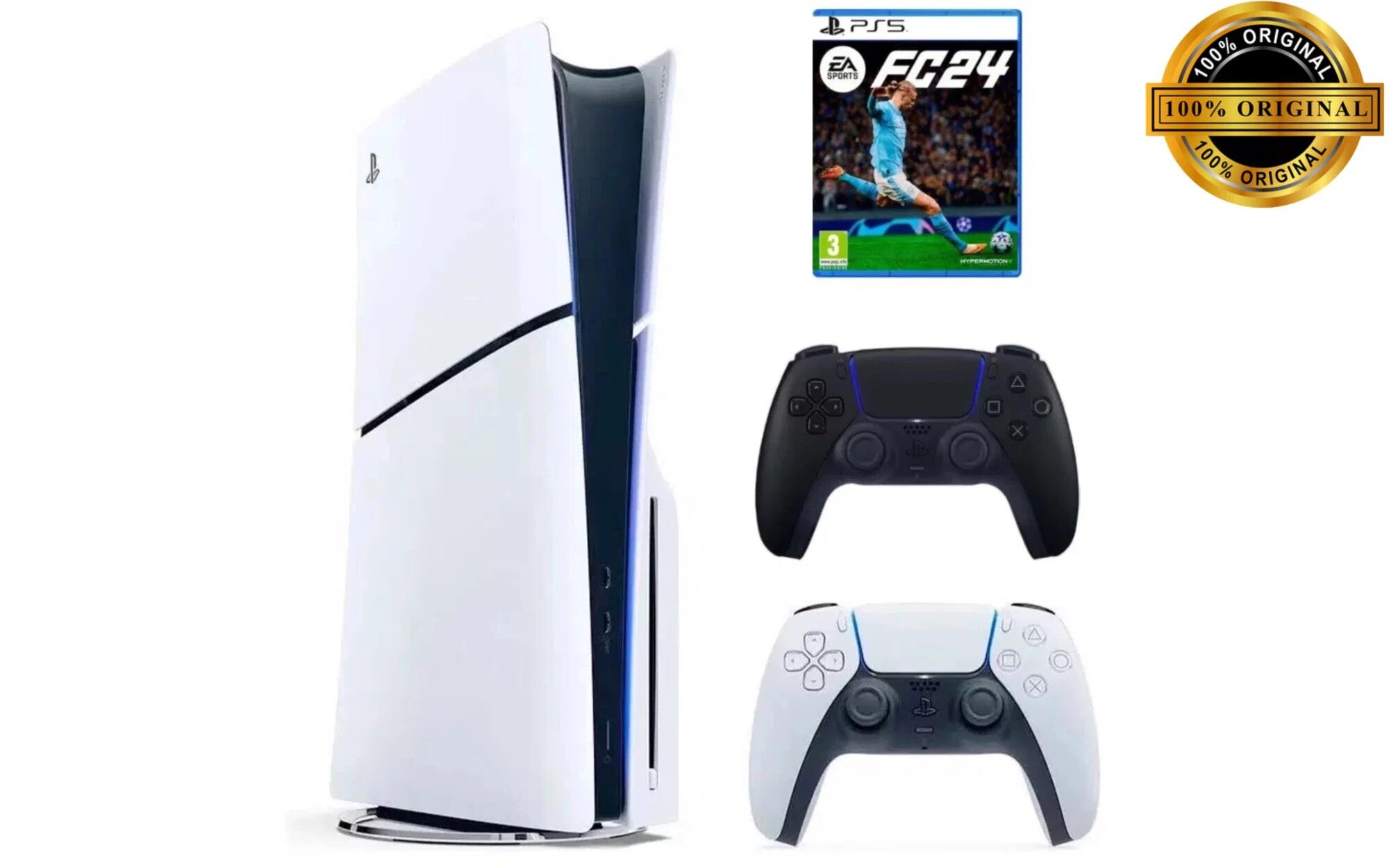 Игровая приставка Sony PlayStation 5 Slim, с дисководом, 1 ТБ, два геймпада, Fifa 24