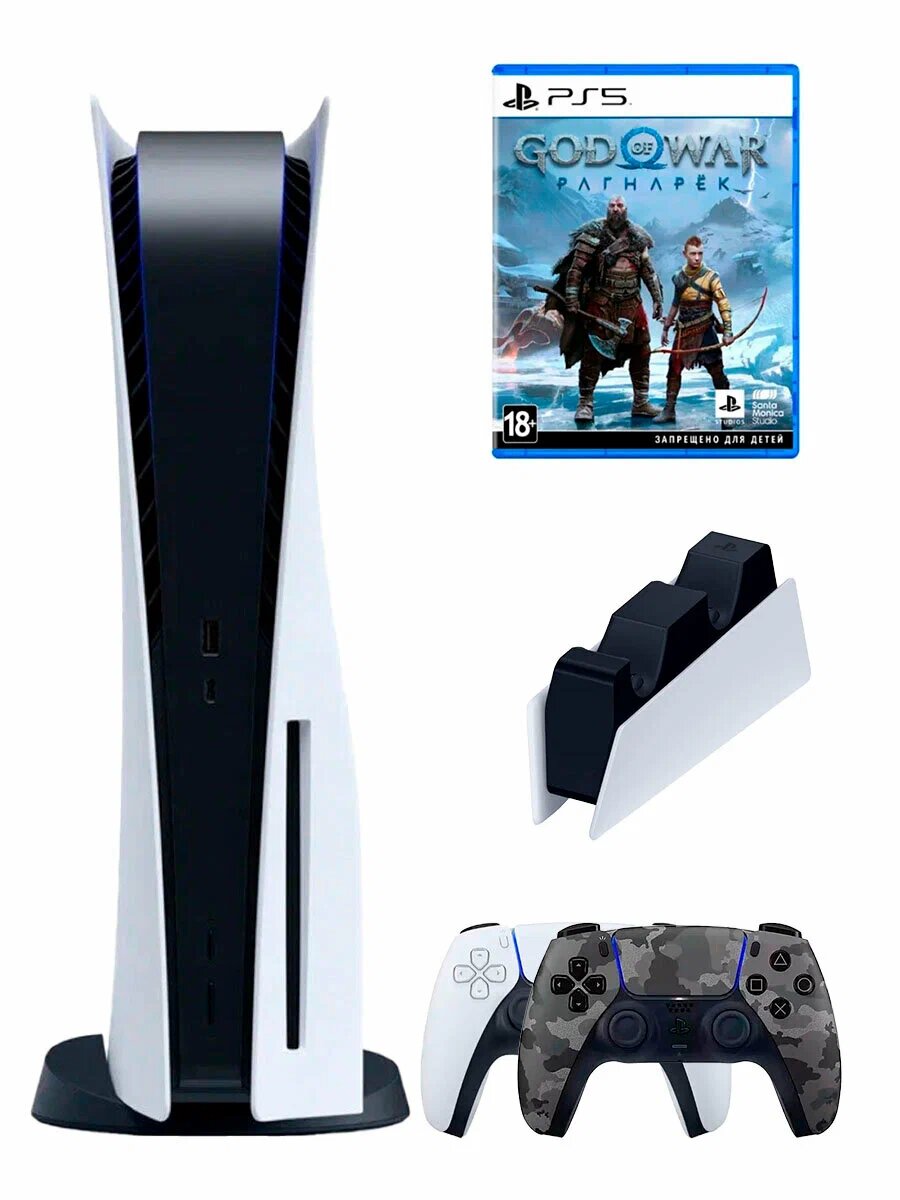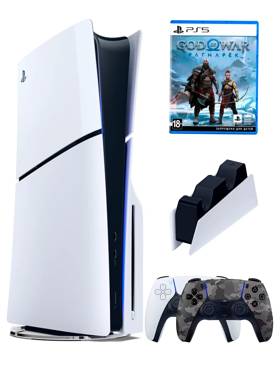 Купить PS5 (ПС5) Игровая приставка Sony PlayStation 5 Slim + 2-й геймпад(камуфляж) + зарядное + игра God of War