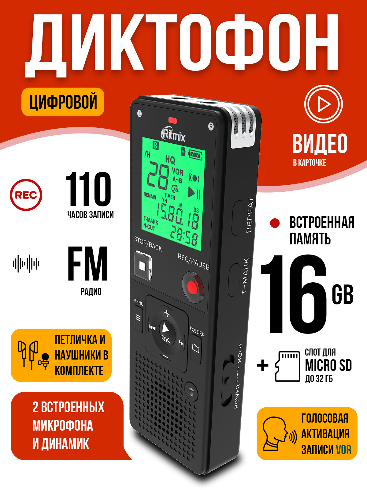 Диктофон Ritmix RR-820 16Gb, черный интересное: