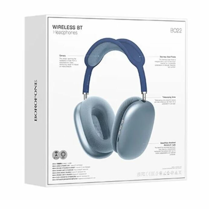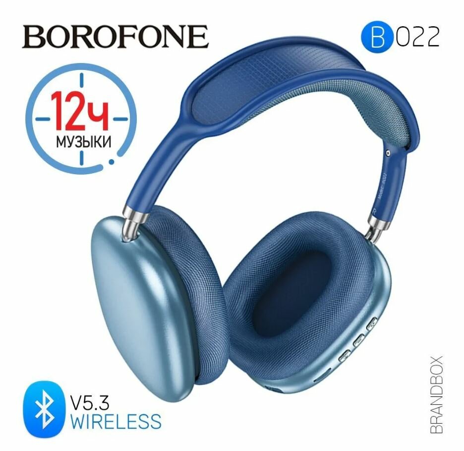 Купить Bluetooth гарнитура BOROFONE BO22 Elegant BT 5.3, 3.5мм, накладная, громкость +/- (синий)