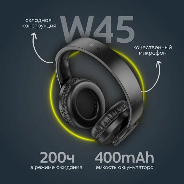 Наушники беспроводные / Bluetooth наушники / Наушники с микрофоном / Hoco W45, цвет : черный