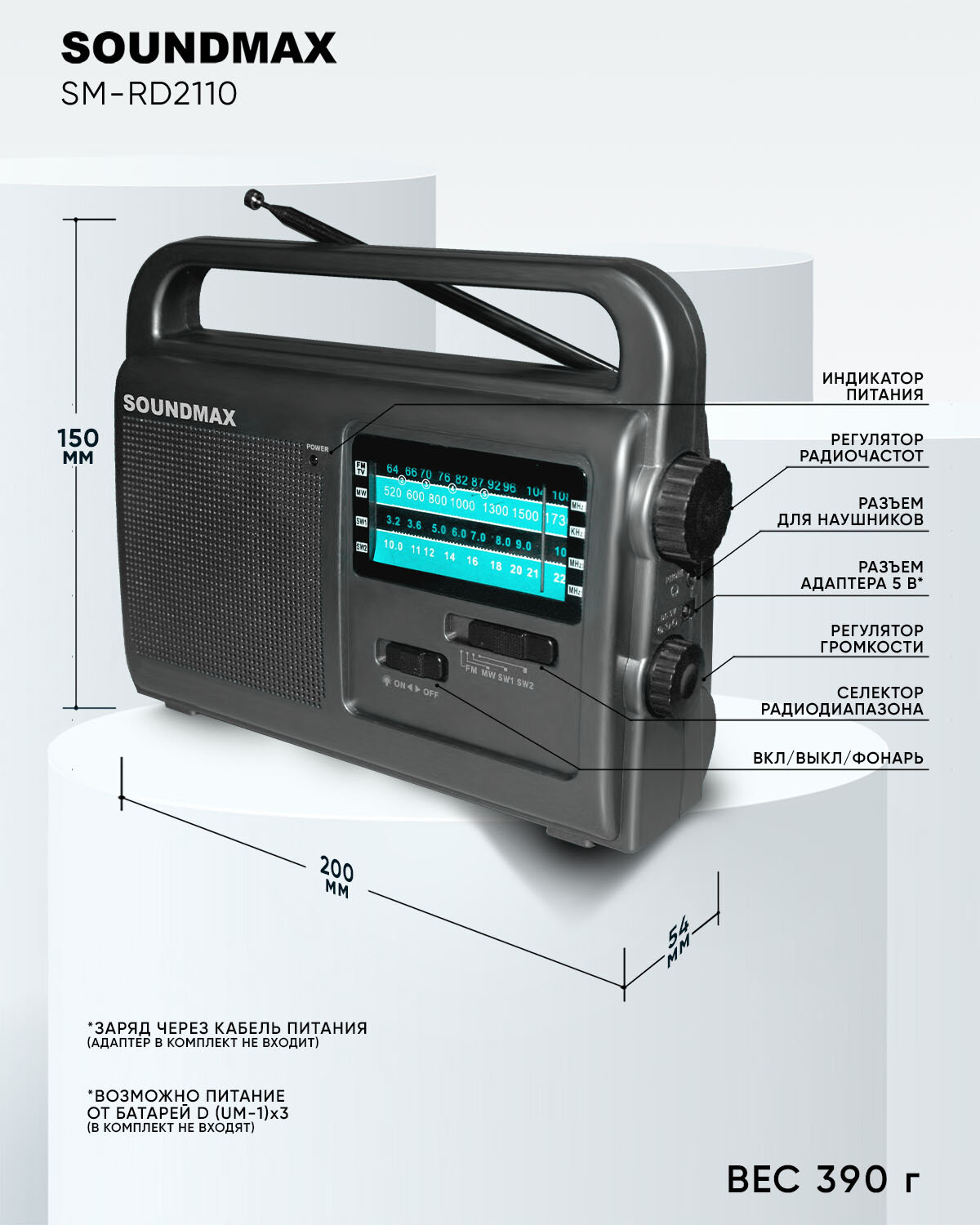 Радио Soundmax SM-RD2110(темно-серый) интересное: