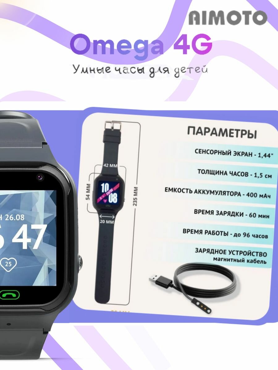 Умные часы Aimoto Omega, 4G с видеозвонком, черный (9250101)