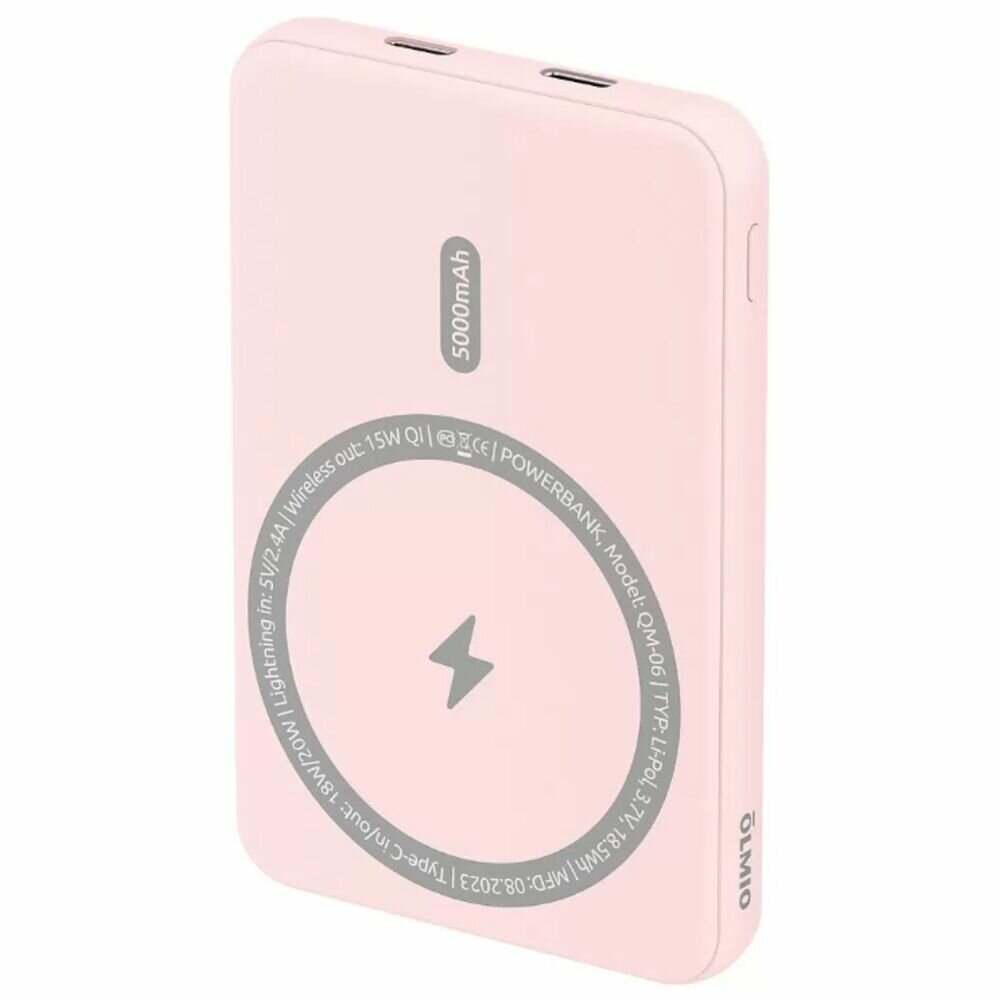 Внешний аккумулятор OLMIO QM-06, 5000mAh с магнитной беспроводной зарядкой 15W, MagSafe, розовый
