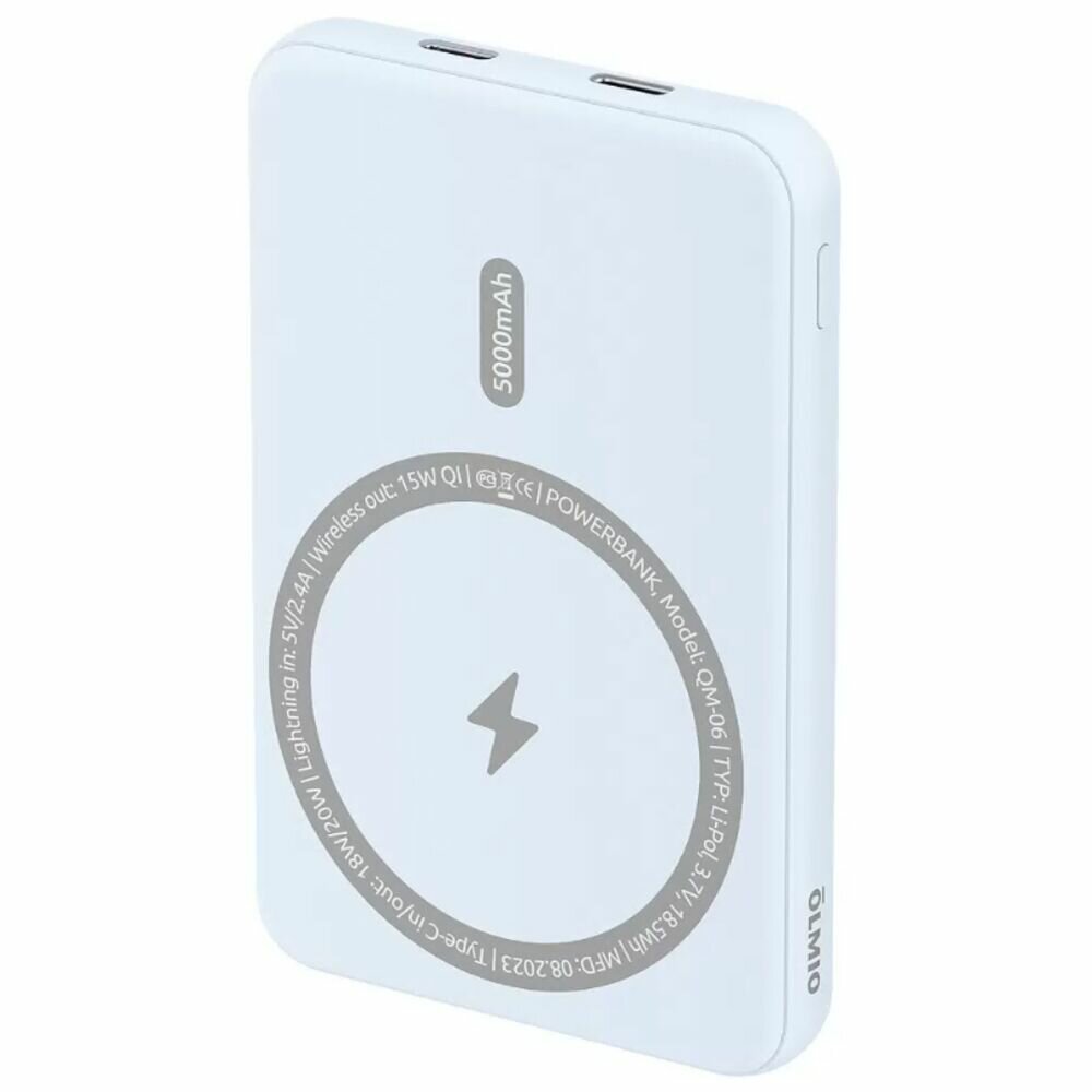 Купить Внешний аккумулятор OLMIO QM-06, 5000mAh с магнитной беспроводной зарядкой 15W, MagSafe, голубой