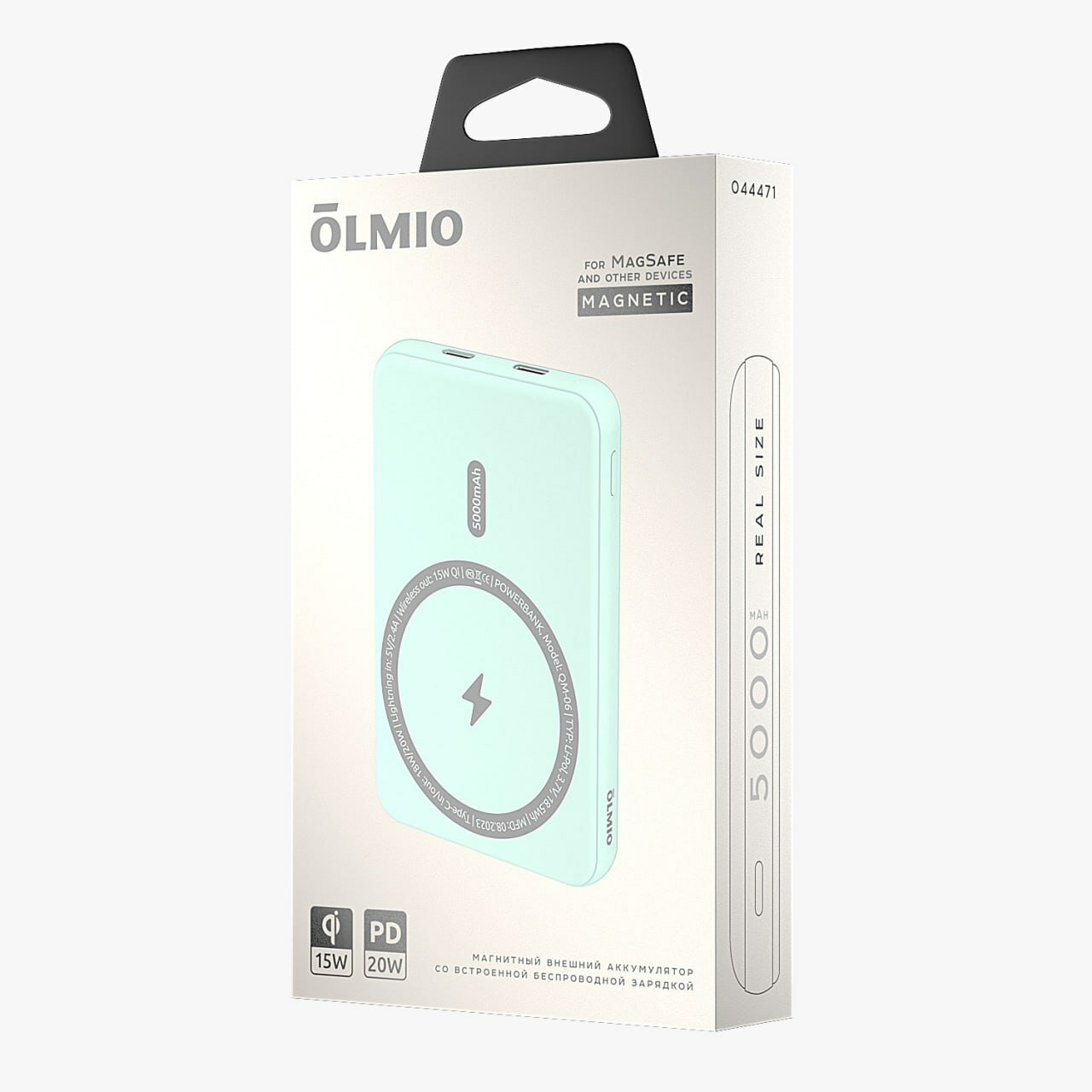 Внешний аккумулятор OLMIO QM-06, 5000mAh с магнитной беспроводной зарядкой 15W, MagSafe, салатовый