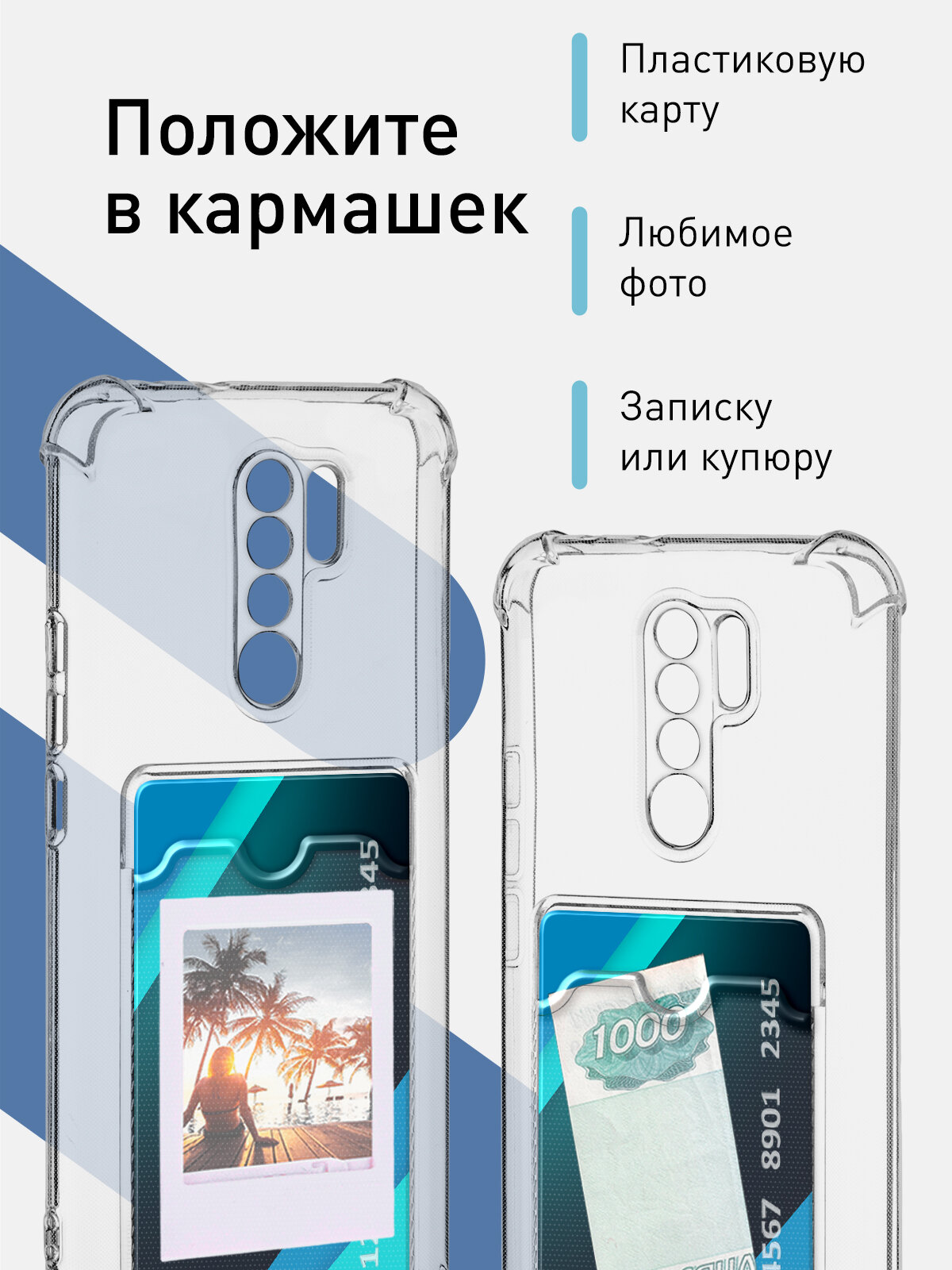 Купить Чехол с кармашком для карты на Xiaomi Redmi 9 (Сяоми Редми 9, Ксиаоми) противоударный чехол-накладка ROSCO с защитой модуля камер, прозрачный