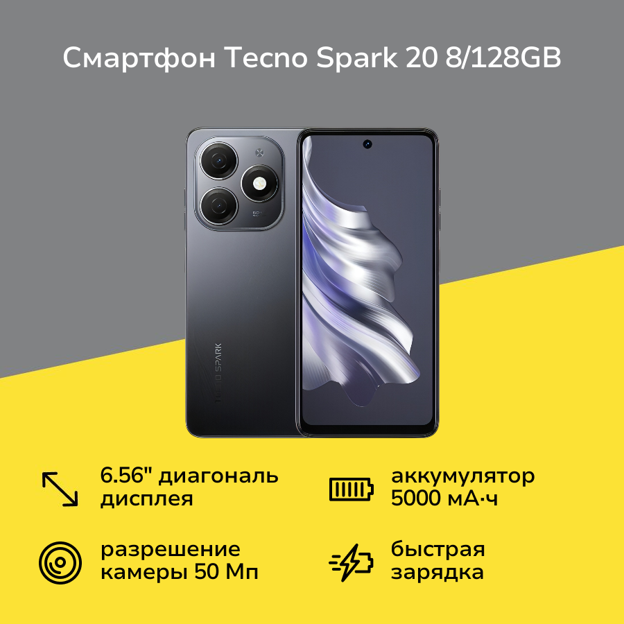 Смартфон Tecno Spark 20 128 ГБ чёрный