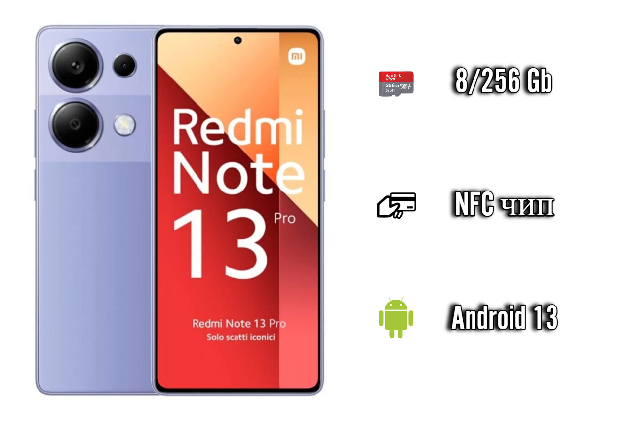 Смартфон Xiaomi Redmi Note 13 Pro RU 8+128 N6/Lavender Purple 6.67 FHD+/AMOLED/120 Hz/MTK G99 Ultra/And13/200+8+2/16MP/NFC/5000mAh