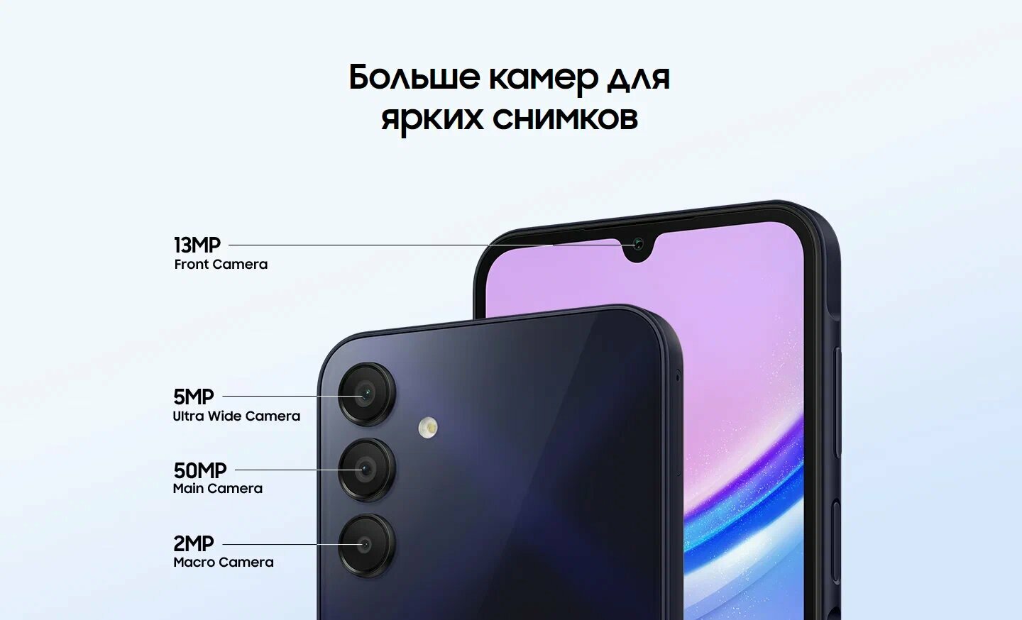 Смартфон Samsung Galaxy A15, 8/128Gb, nano SIM+eSIM, Light Blue (Серо-синий)