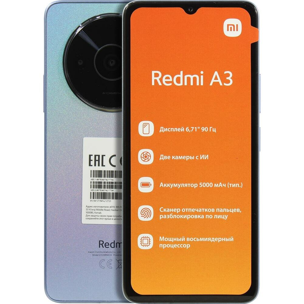 Смартфон Xiaomi Redmi A3 3/64Gb Голубой RU