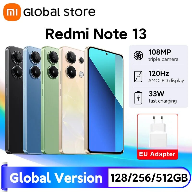 Глобальная версия смартфона Xiaomi Redmi Note 13, 128/256 ГБ Snapdragon ® Камера 685, 108 МП, 120 Гц, FHD + 6,67 дюйма, AMOLED, 33 Вт, зарядка, 8GB 256GB Green, Offical Standard-