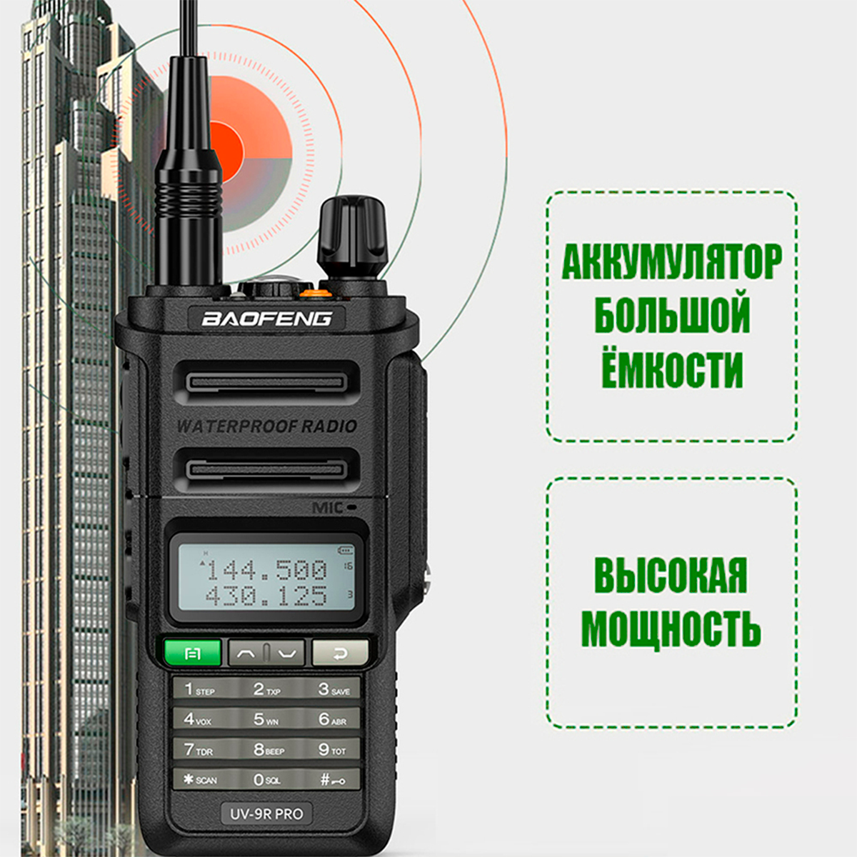 Портативная радиостанция Baofeng UV-9R PRO 8 Вт / Черная комплект 2 шт / UHF; VHF интересное: