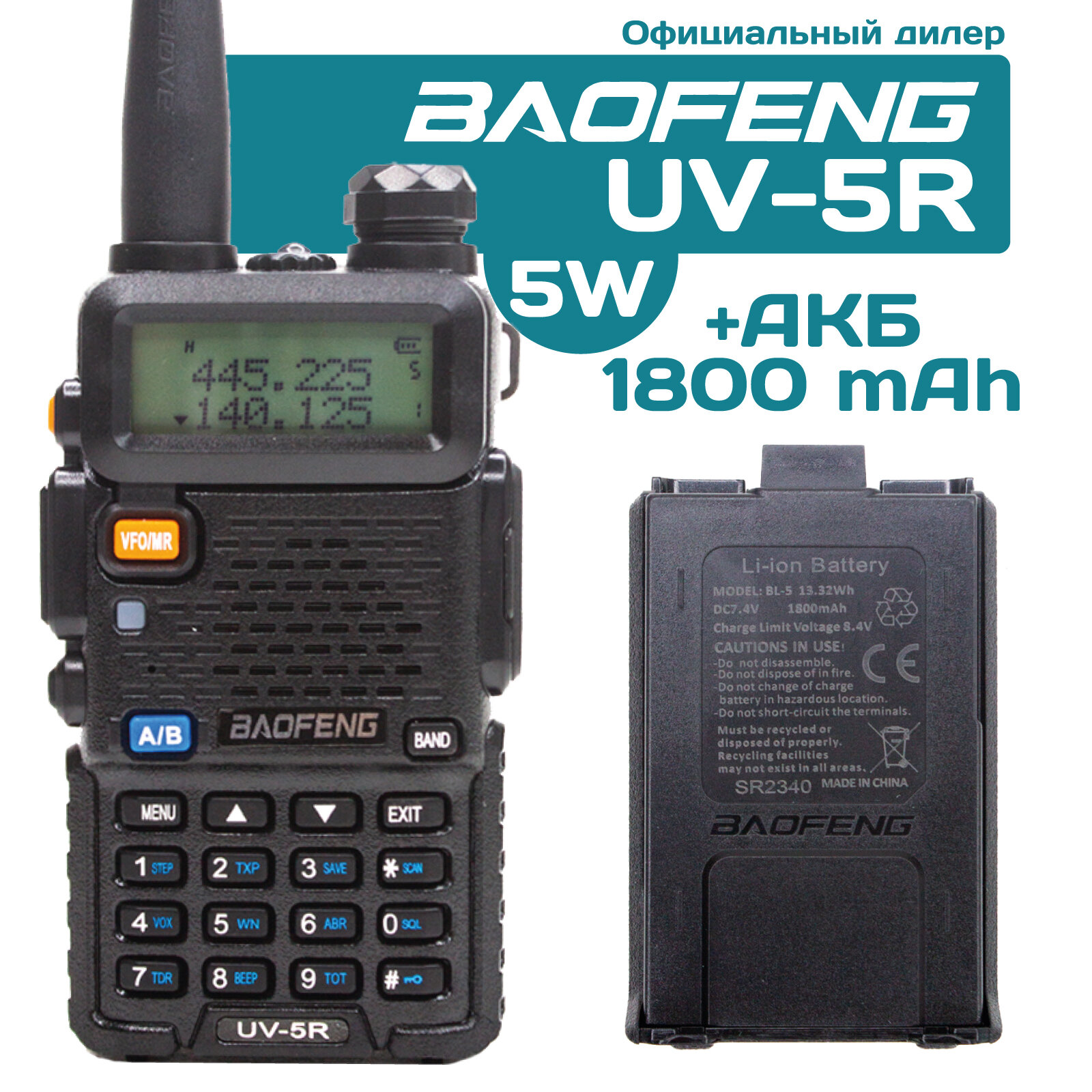 Рация Baofeng UV-5R 5W + дополнительный аккумулятор 1800 мАч интересное:
