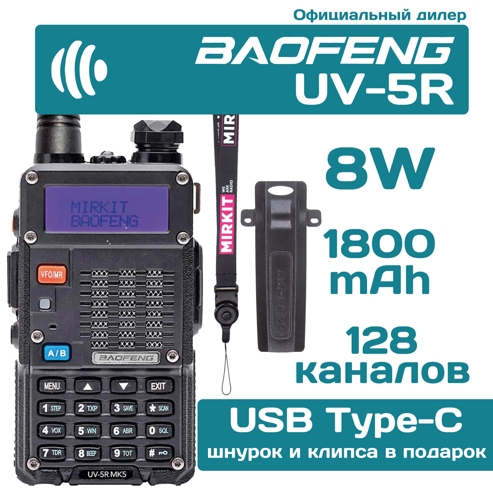 Купить Рация Baofeng UV-5R + ремешок для рации и запасная клипса Mirkit