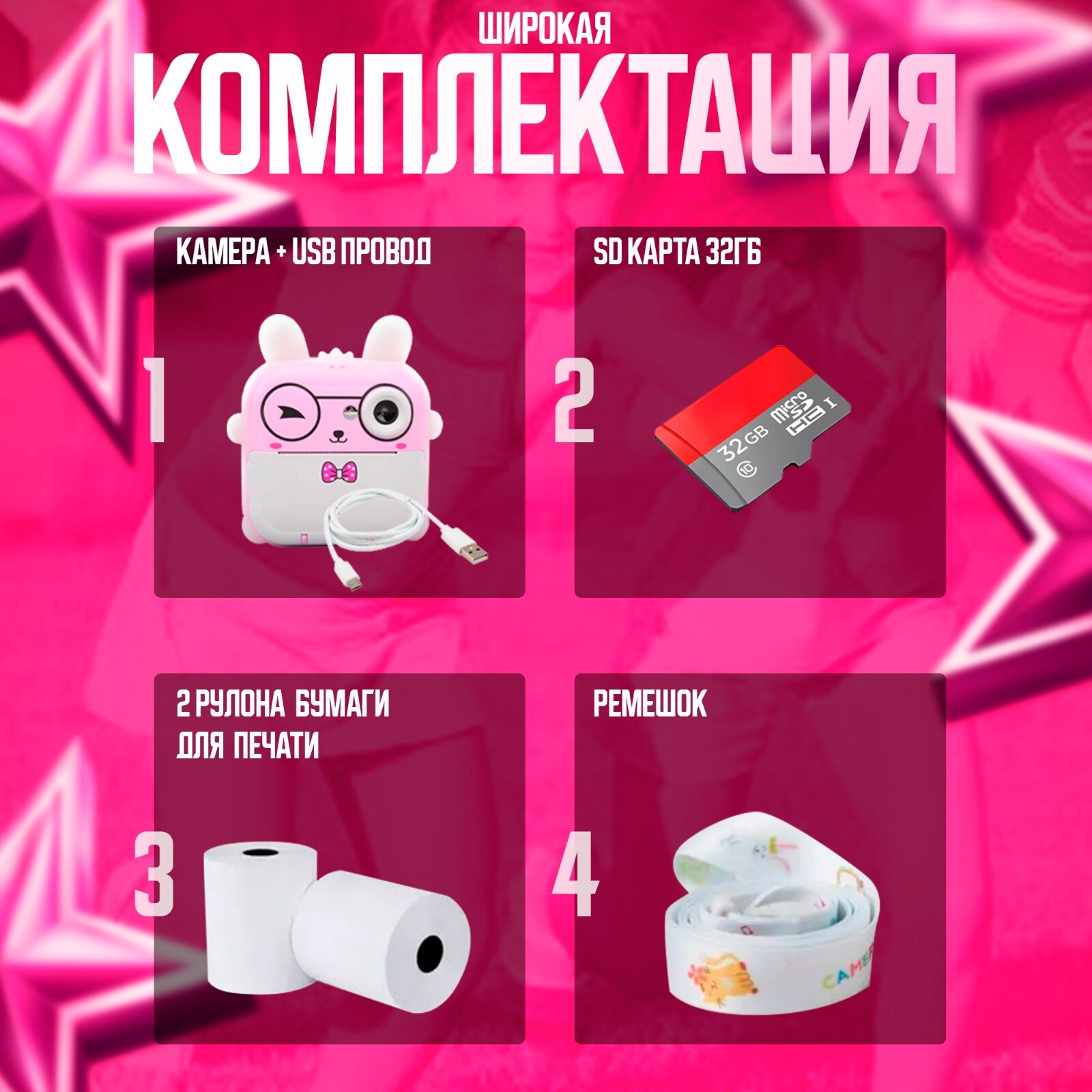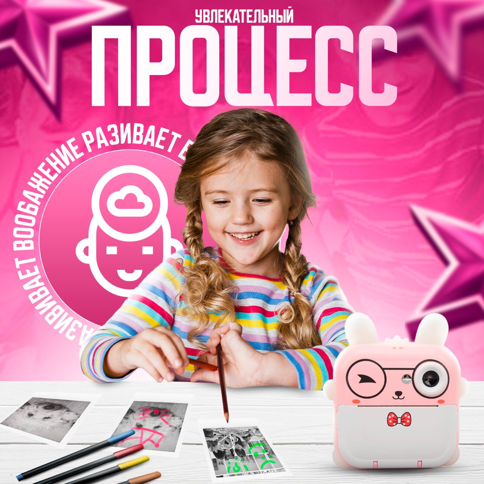 Детский фотоаппарат моментальной печати на чековой ленте для детей, розовый интересное: