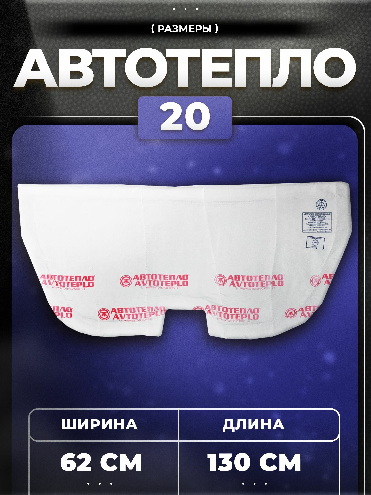 Автотепло №20 (утеплитель двигателя, автоодеяло) 130*62 см AT20