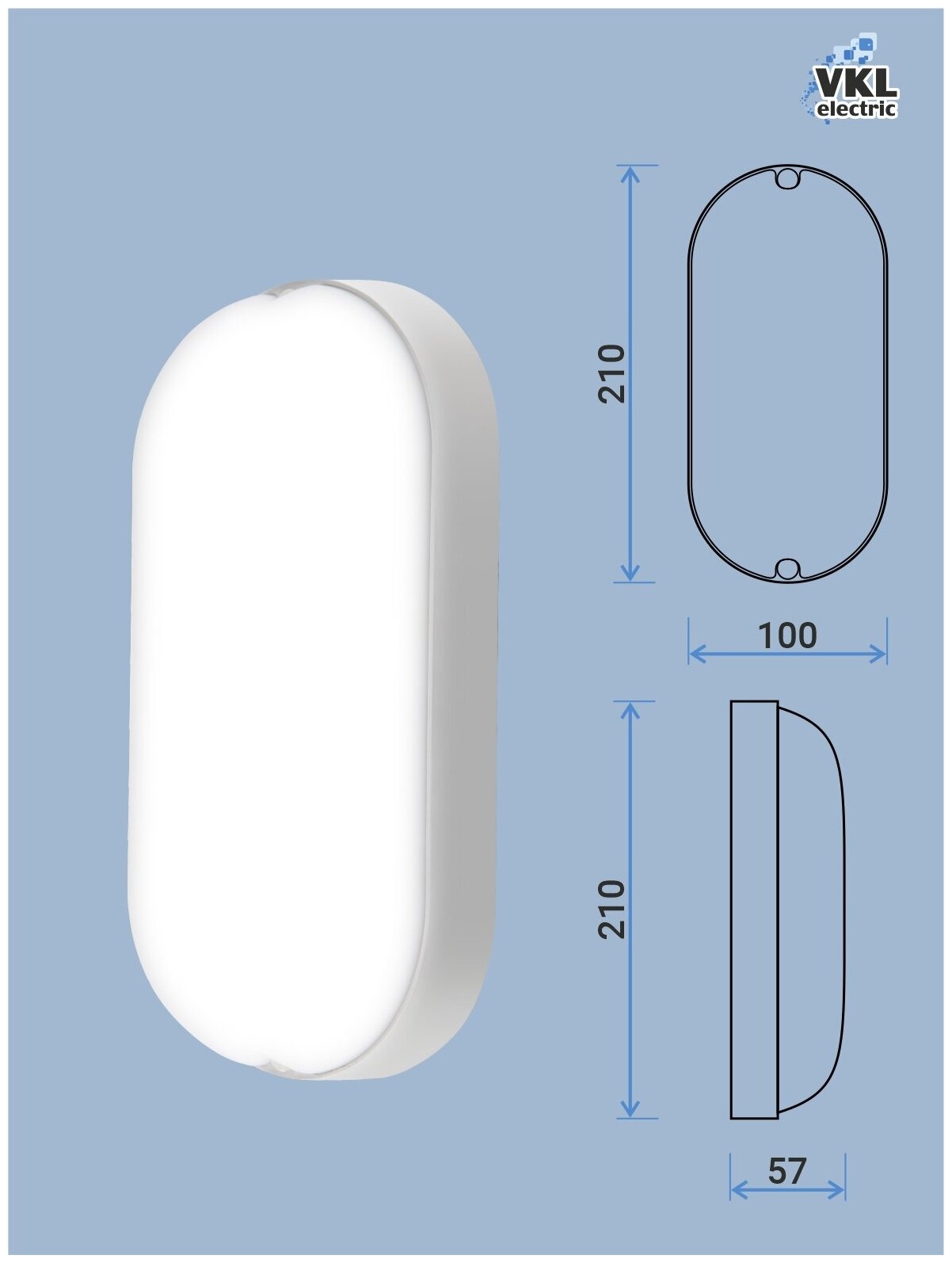 Светильник светодиодный влагозащищенный овал (VLZO3-65-8-4000 ), 4000К,650Лм, IP65 (168*70*46мм) VKL electric