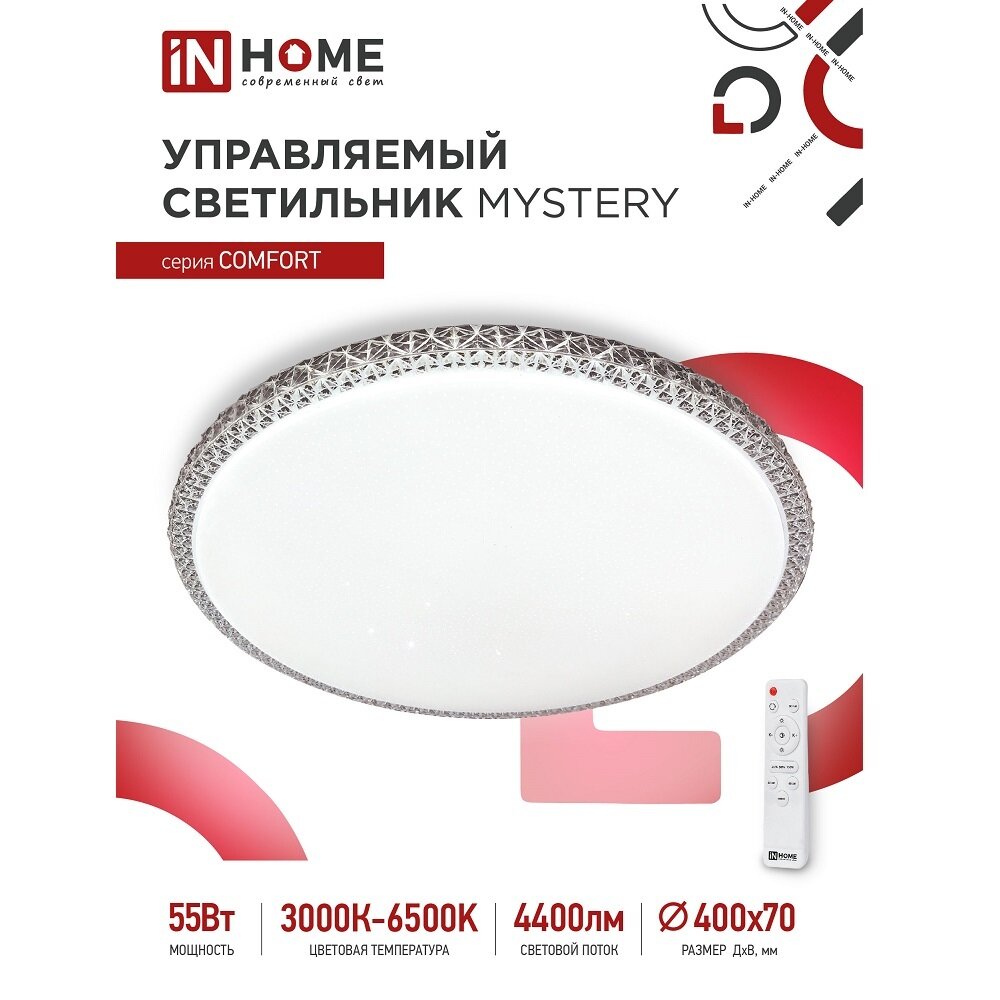 Светильник светодиодный COMFORT MYSTERY 55Вт 230В 3000-6500К 4400лм 400х70мм с пультом ДУ IN HOME 4690612034904