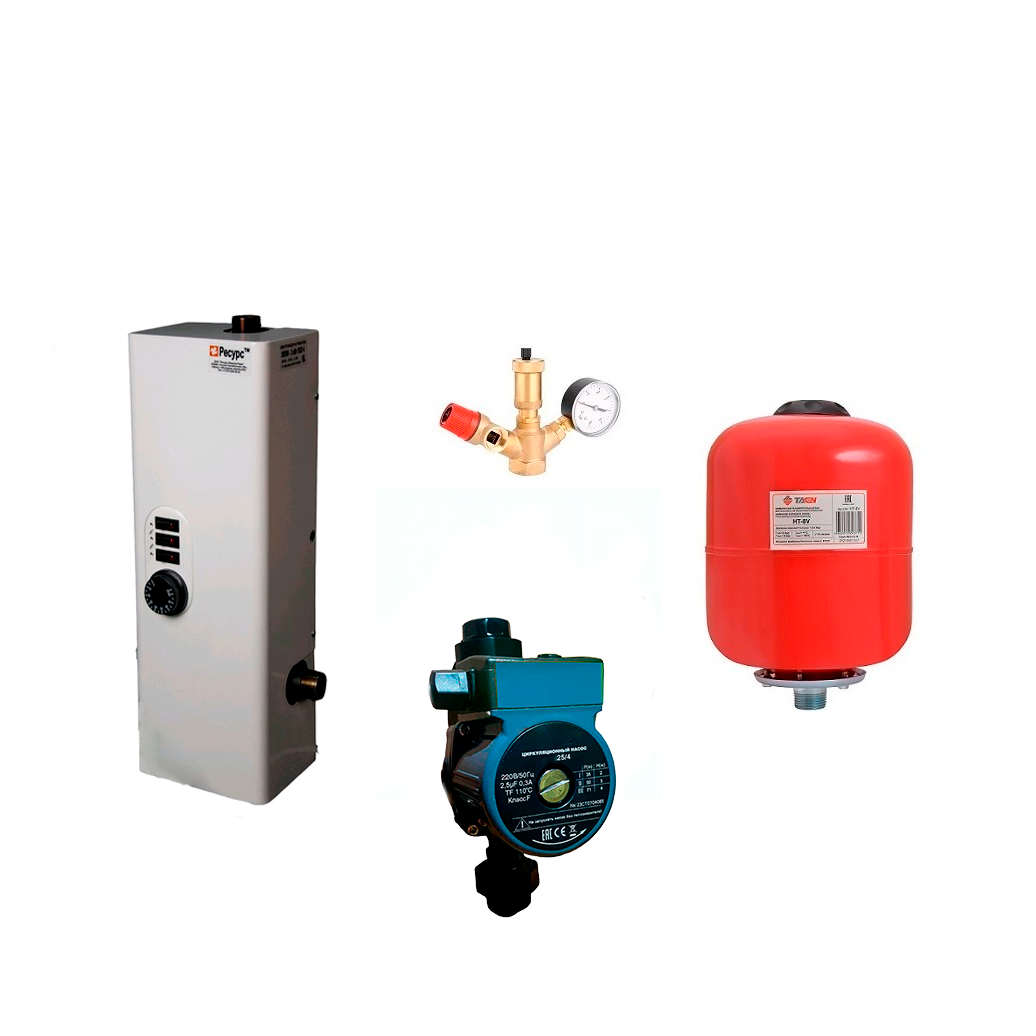 Электрический котел Ресурс ЭВПМ 6 кВт, насос TAEN 25/6, Группа безопасности, Бак HT-8V