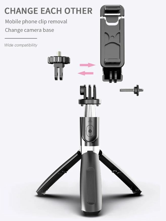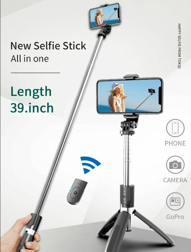 Монопод-штатив с пультом , Selfie Stick Tripod Black (19-100см) L02 интересное: