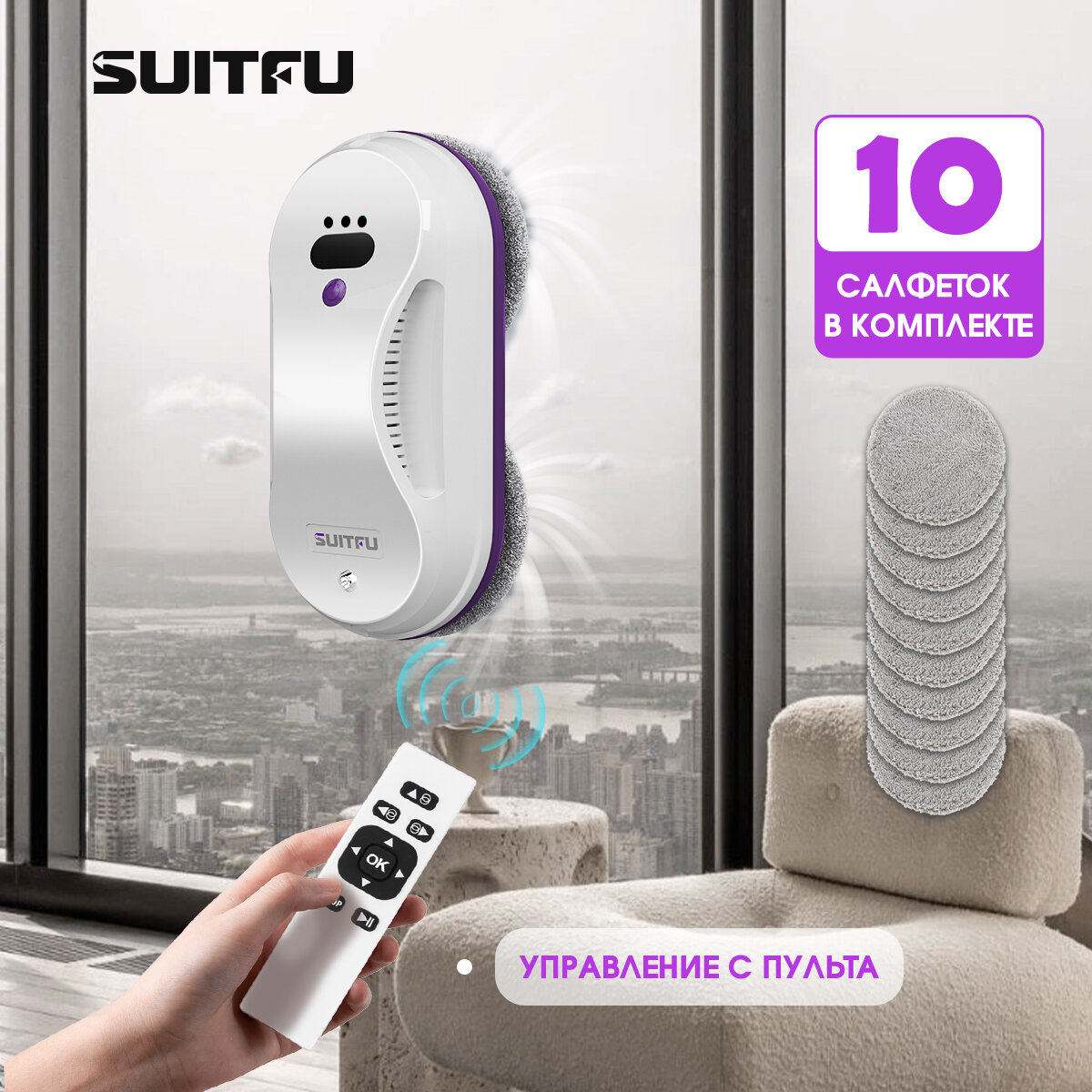 Робот-мойщик окон Suitfu HCR-07 Робот-стеклоочиститель, белый+фиолетовый интересное: