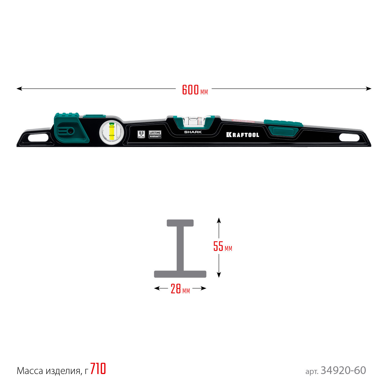 Сверхпрочный уровень KRAFTOOL 600 мм 34986-60