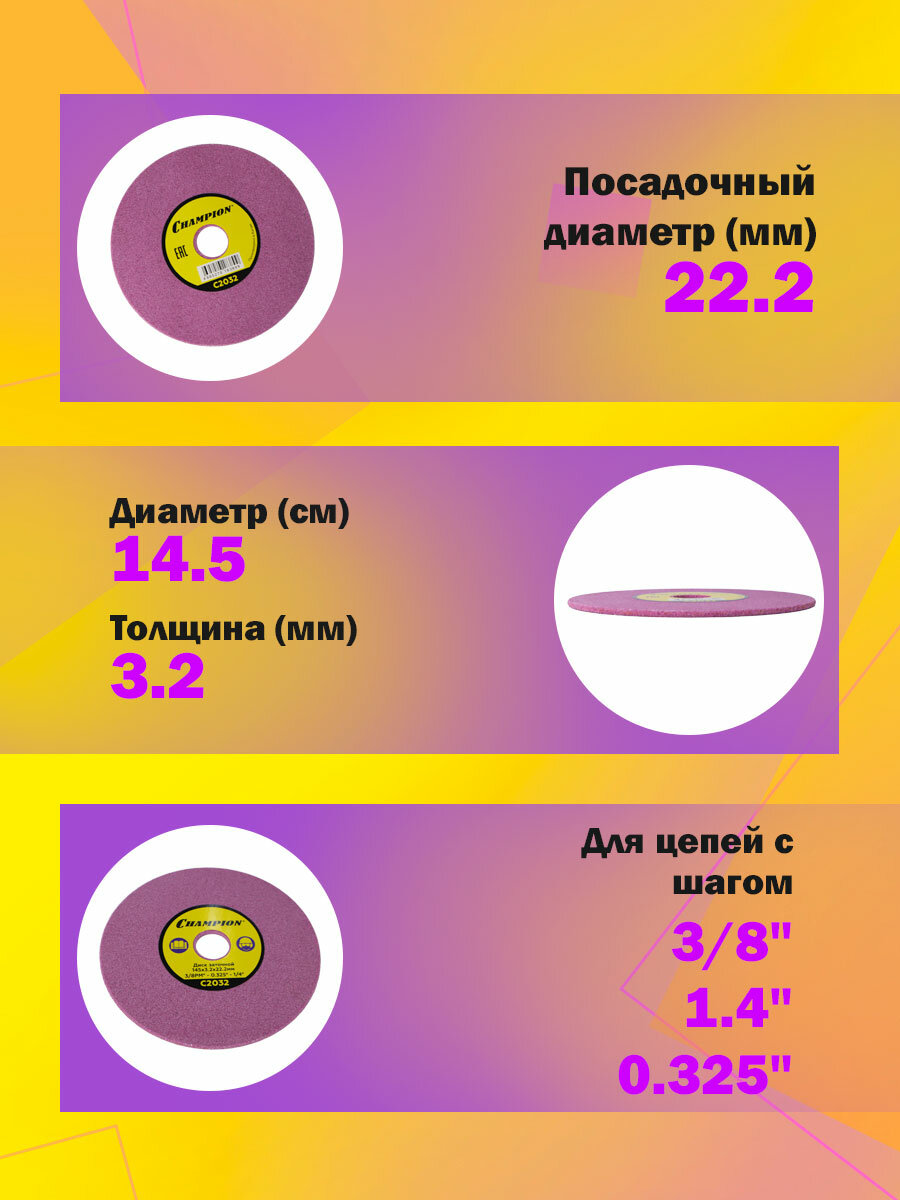 Диск заточной для станка CHAMPION C2001 для заточки цепей, 145х3,2х22,2 мм