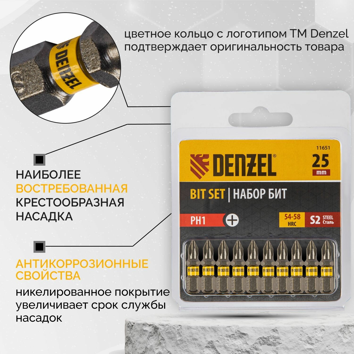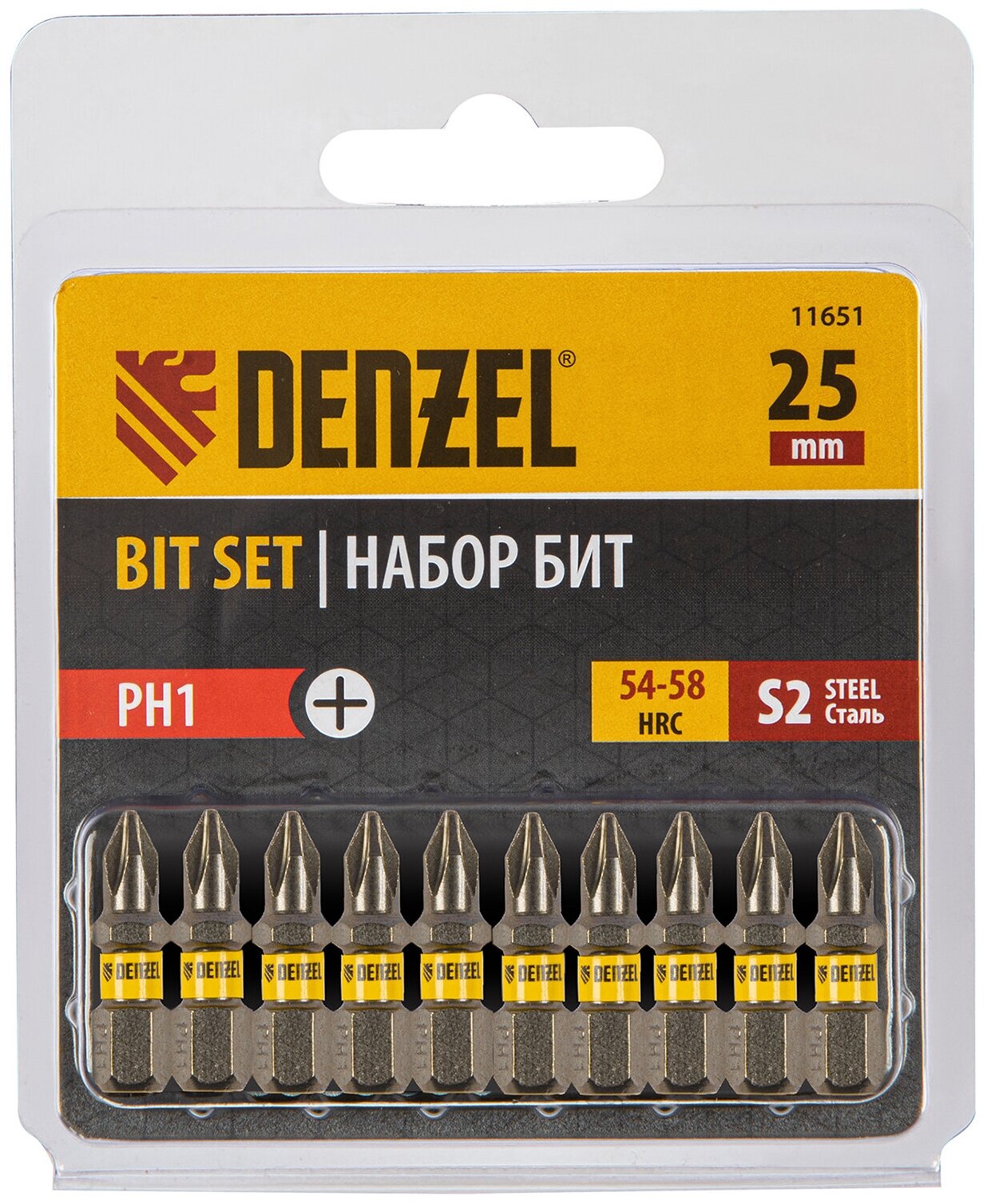 Купить Набор бит PH1х25, сталь S2, шестигранный профиль, 10 шт.// Denzel 11651