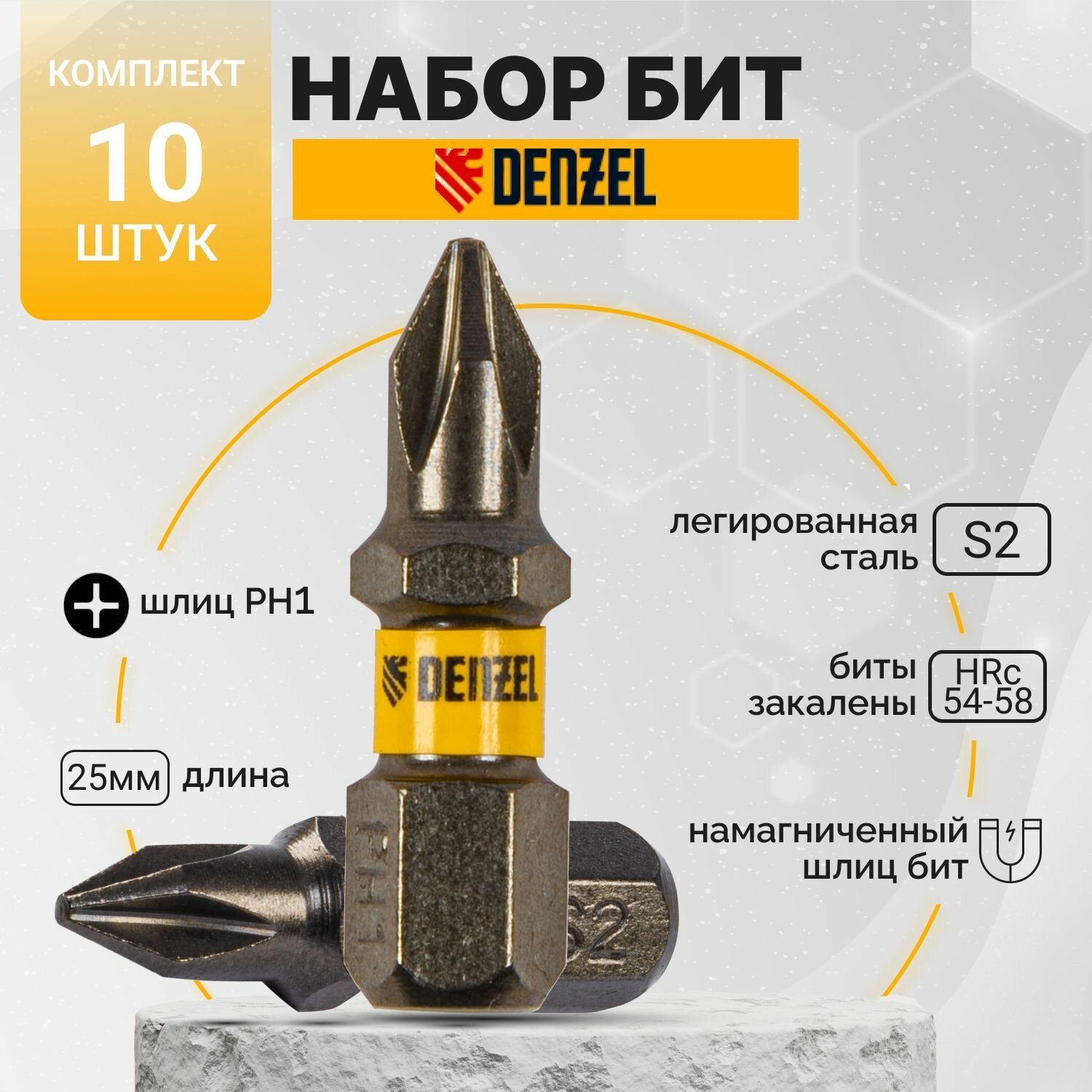 Набор бит PH1х25, сталь S2, шестигранный профиль, 10 шт.// Denzel 11651 интересное: