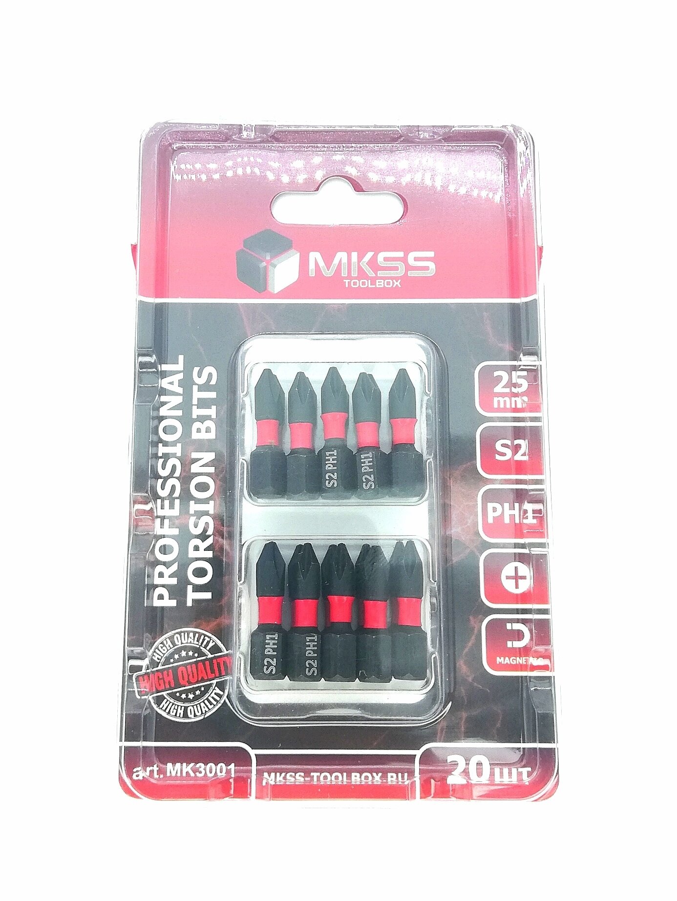 Бита MKSS MK3001 торсионная магнитная PH1x25 мм, набор (20 штук)