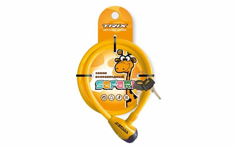 Замок велосипедный Trix Safari детский трос стальной с ключами 12x800мм желтый . интересное: