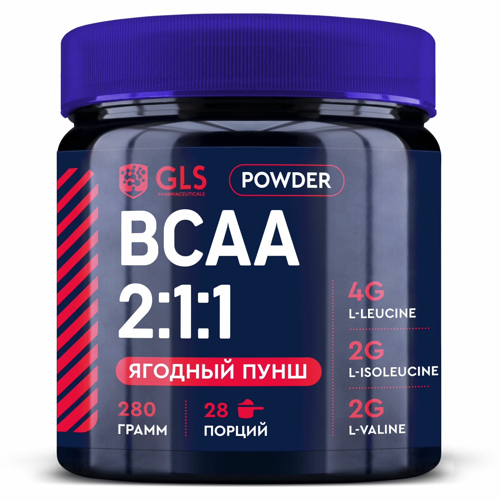 GLS Pharmaceuticals BCAA 2:1:1 аминокислоты для набора массы GLS со вкусом ягодного пунша, 280 г