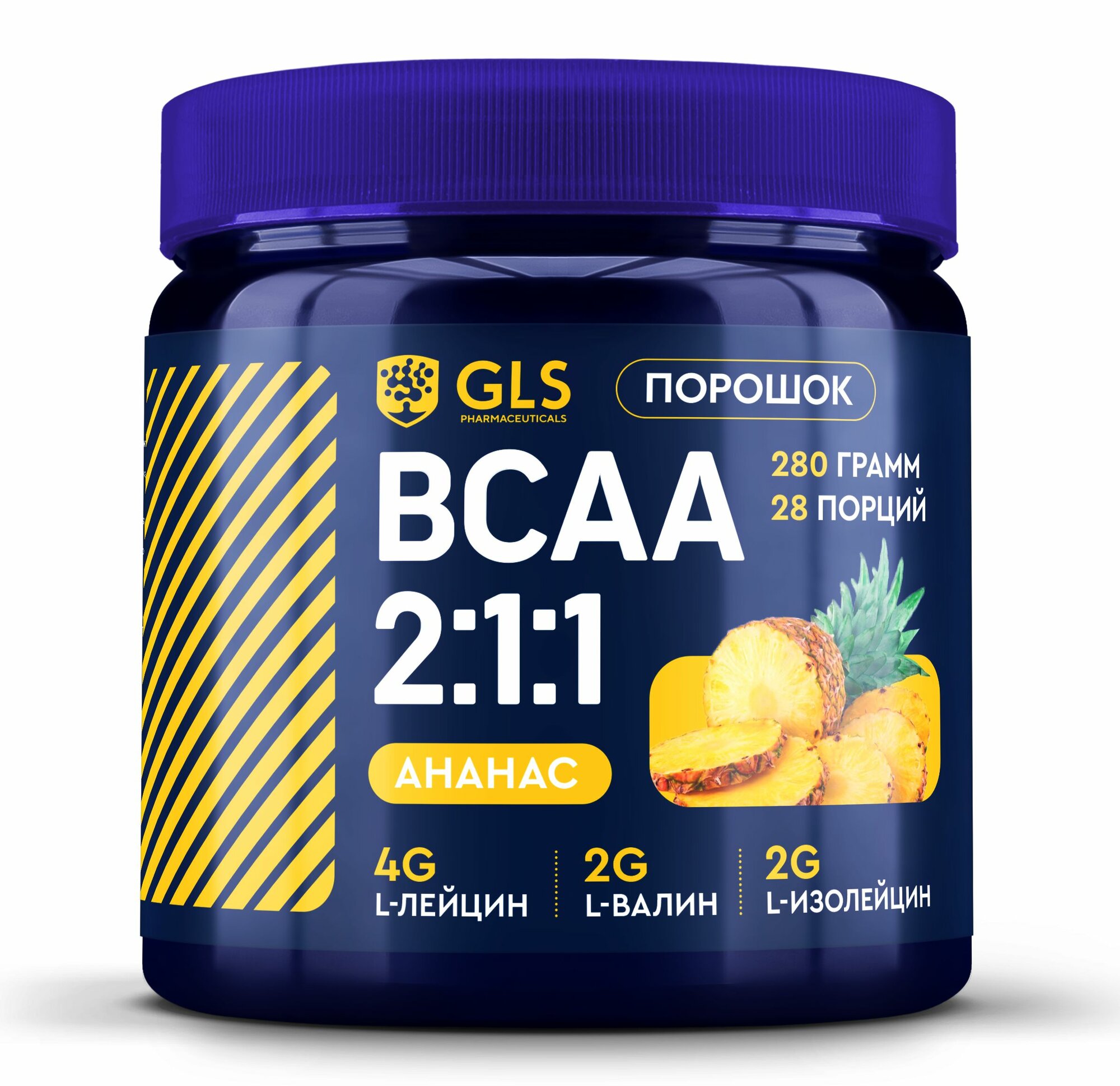 GLS Pharmaceuticals BCAA 2:1:1 аминокислоты для набора массы GLS экзотический микс, 280 г