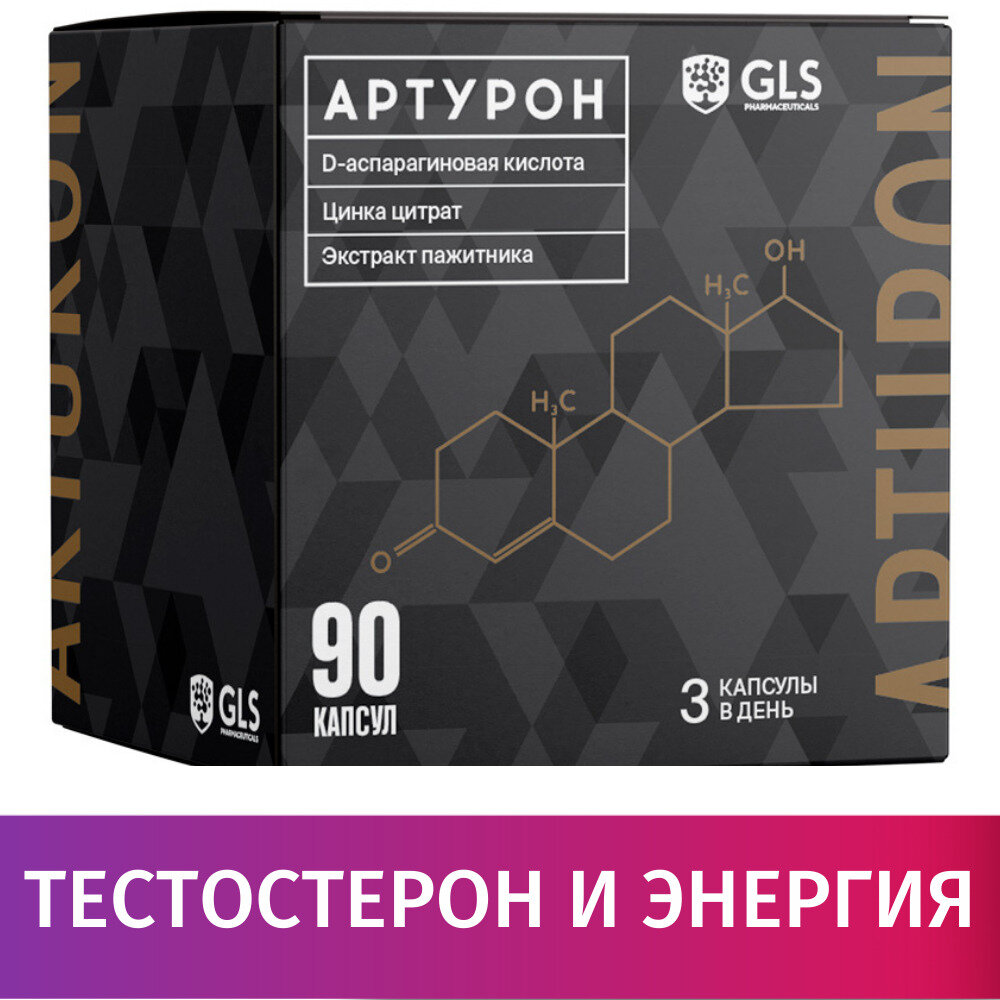 GLS Pharmaceuticals Артурон GLS натуральный бустер тестостерона, 50 капсул по 500 мг
