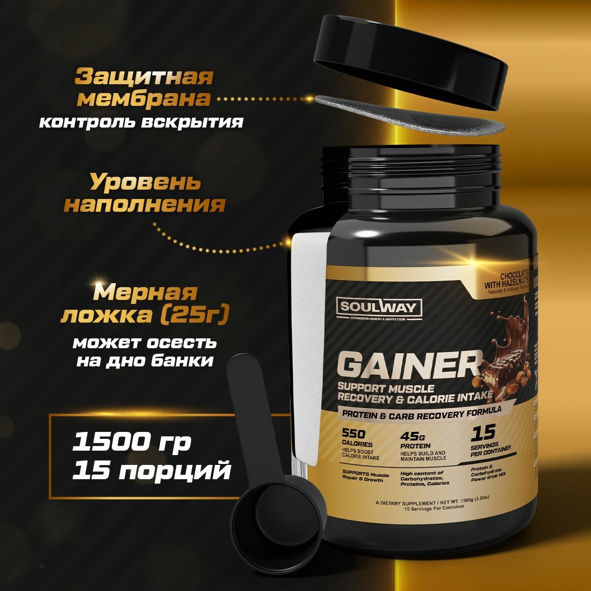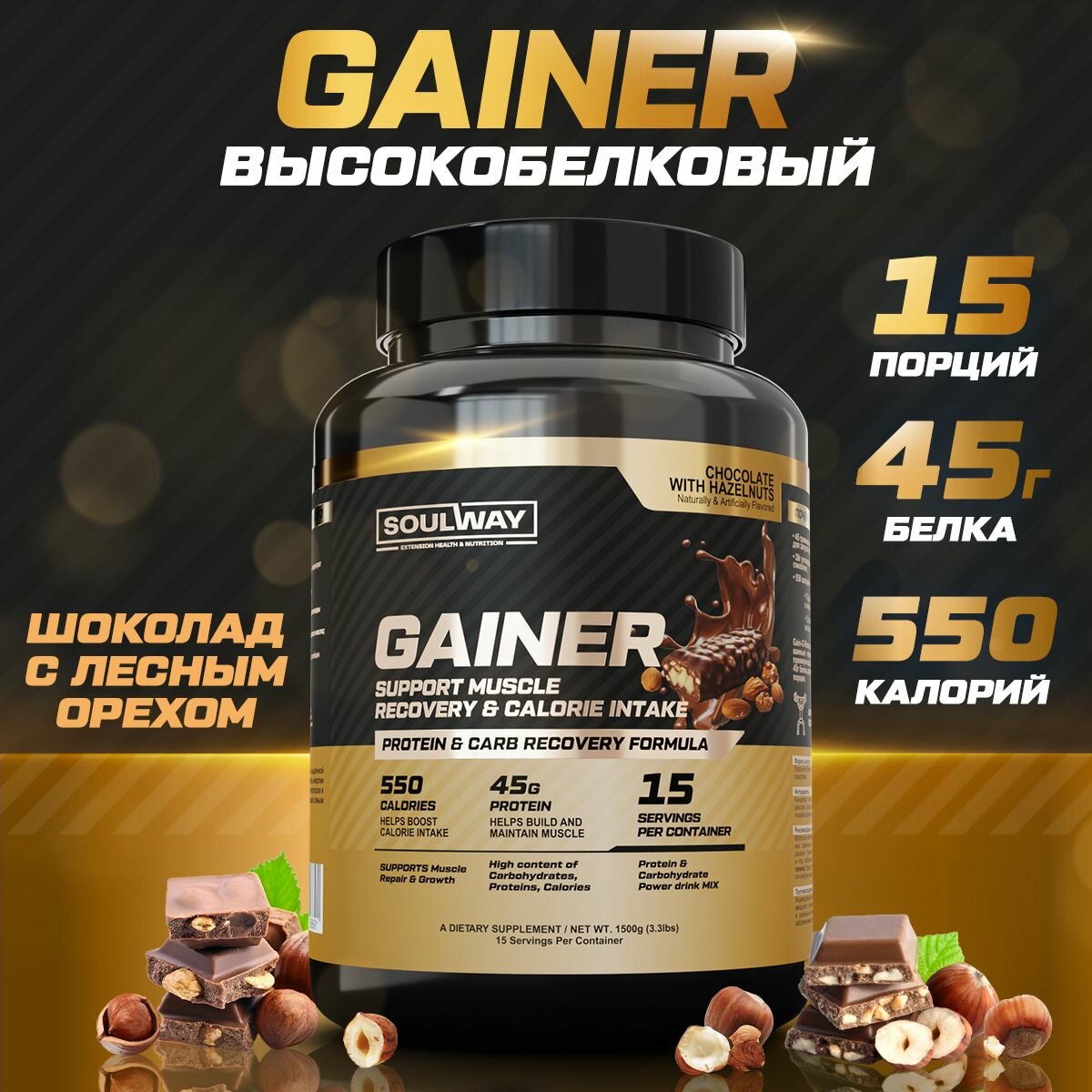 Высокобелковый гейнер Soul Way "Шоколад с лесными орехами" 3х1500гр = 45 порций