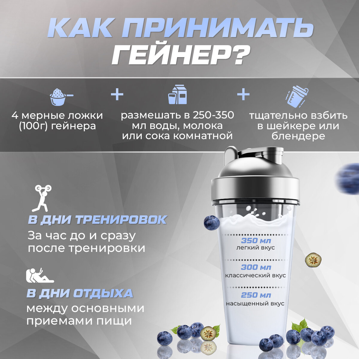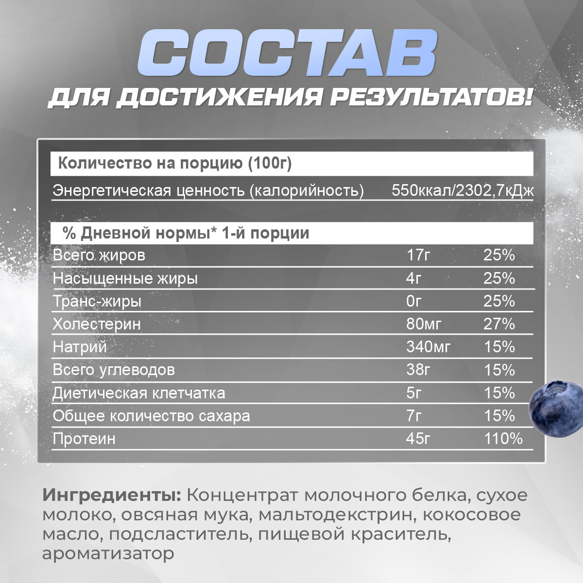 Гейнер высокобелковый / черничный йогурт / 1500 гр 15 порций