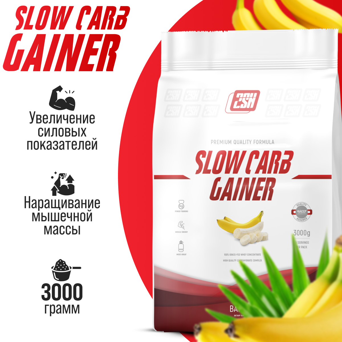 Гейнер для набора мышечной массы с медленными углеводами 2SN Slow Carb Gainer 3000г (Банан)