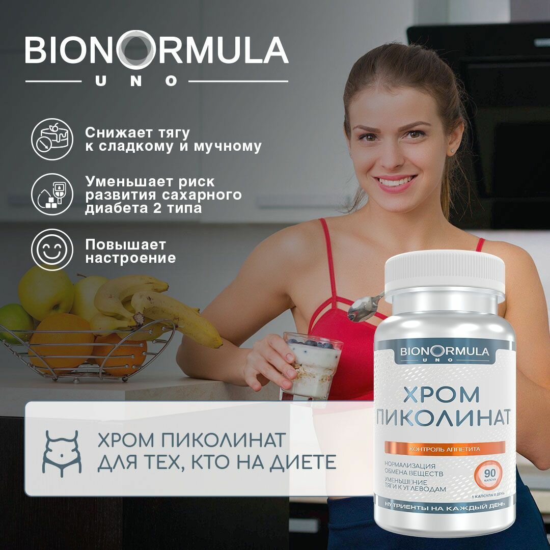 Пиколинат хрома, бад для похудения, снижения (контроля) аппетита, Chromium Picolinate Bionormula, 90 капсул интересное: