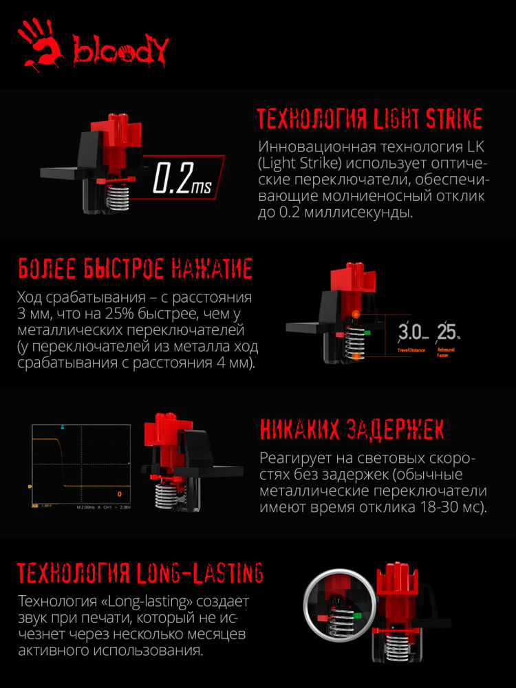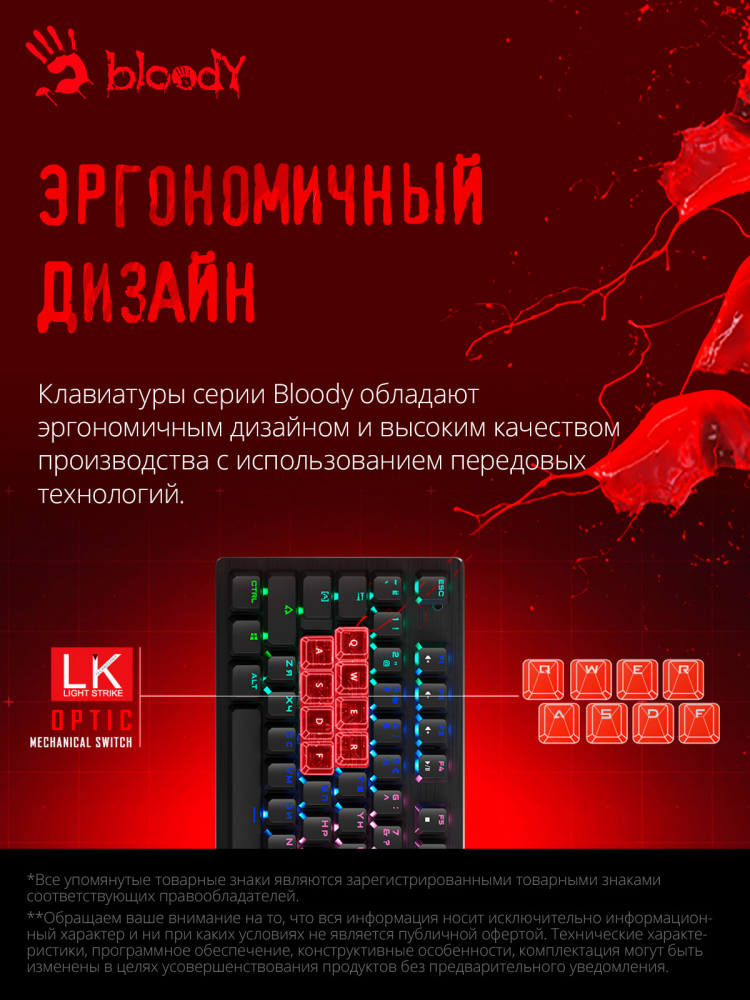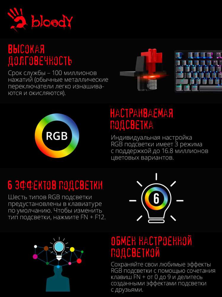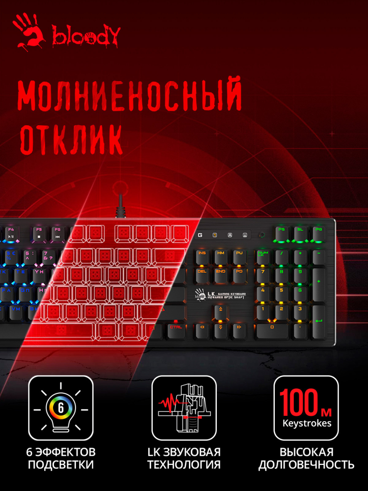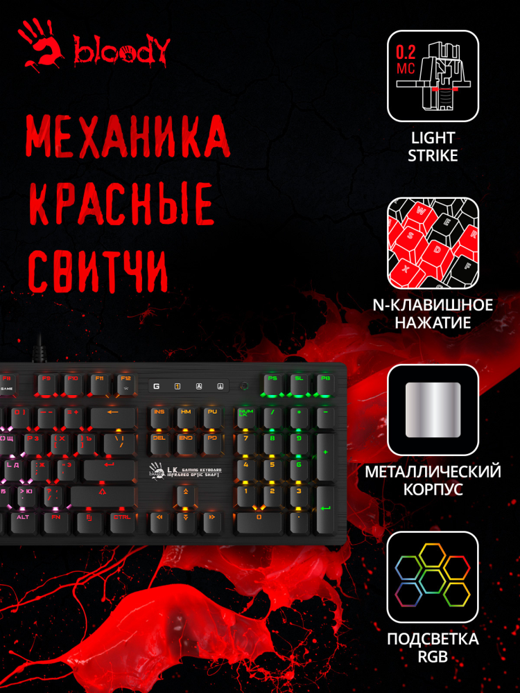 Клавиатура A4 Bloody B820R механическая черный USB for gamer LED интересное:
