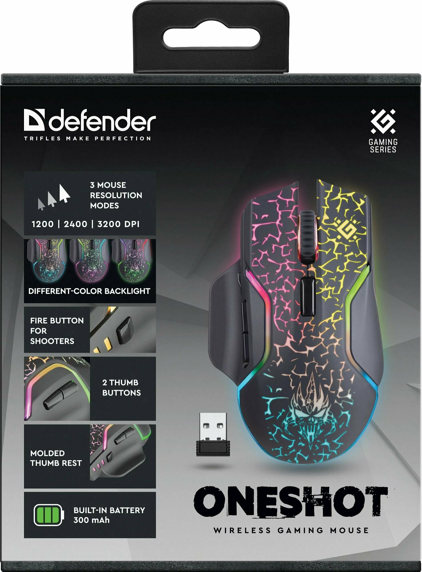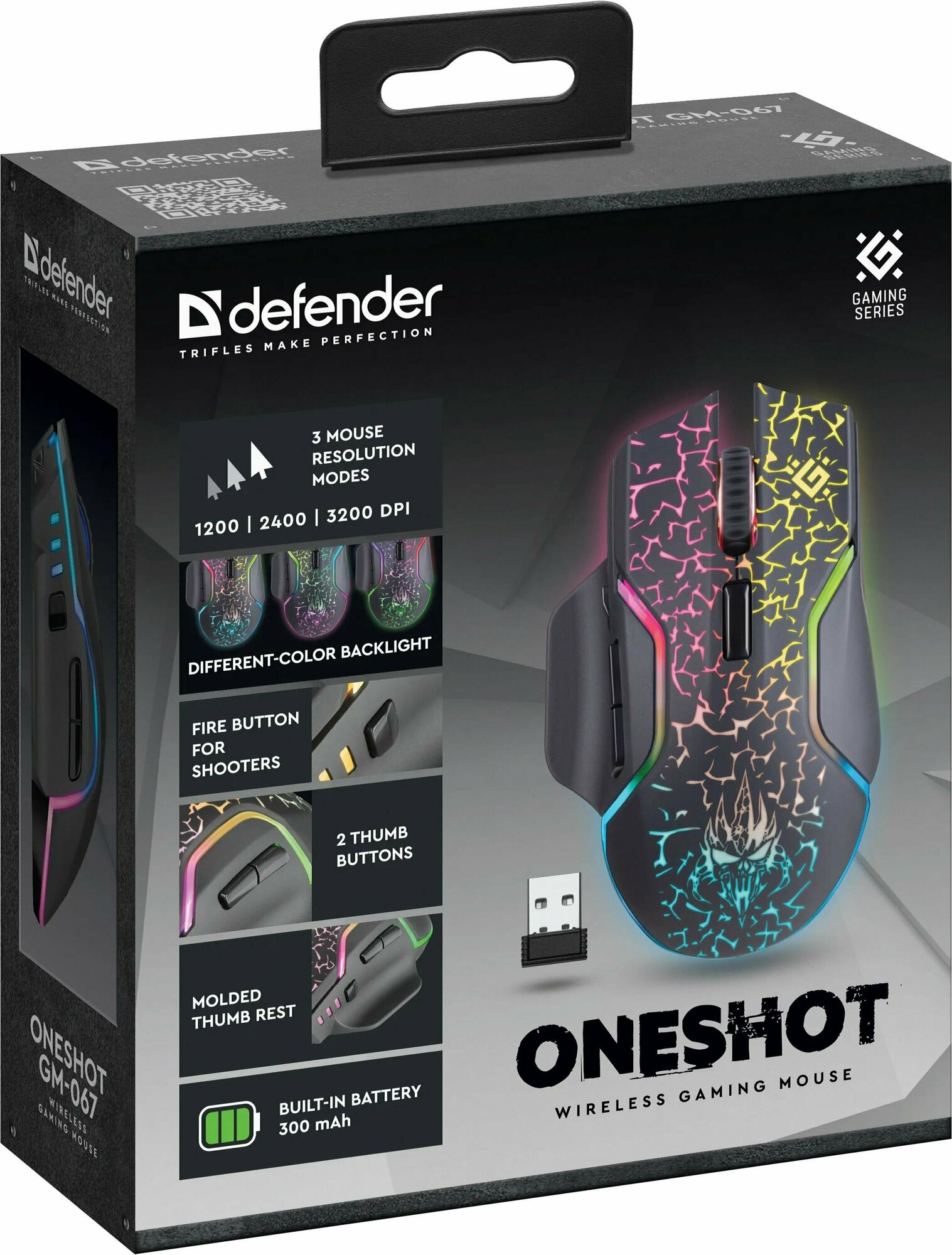Defender Оптическая мышь Defender Oneshot GM-067 52067, беспров., 6кн.+скр., подсветка, черный (USB) (ret)