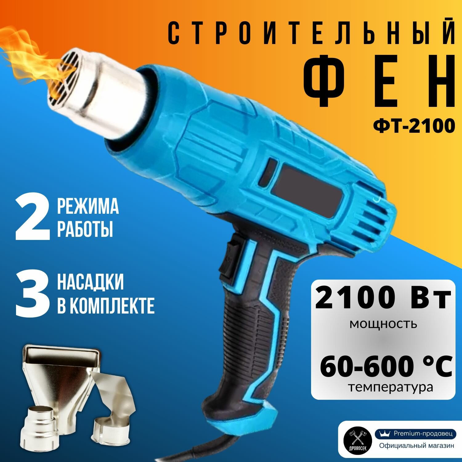 Фен строительный Варяг ФТ-2100 технический с регулировкой температуры, термофен (2100 Вт, 2 режима работы, 3 насадки) с защитой от перегрева, подарок мужчине интересное: