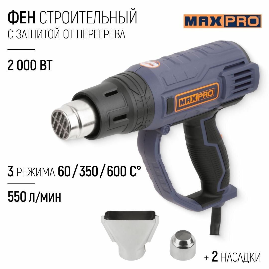 Фен строительный 2000Вт MaxPro MPHG2001