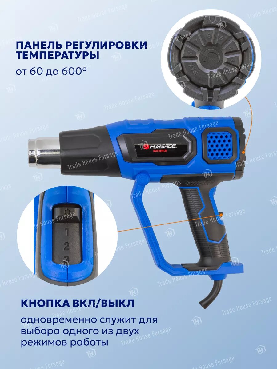 Фен промышленный электрический с индикатором температуры и насадками Forsage