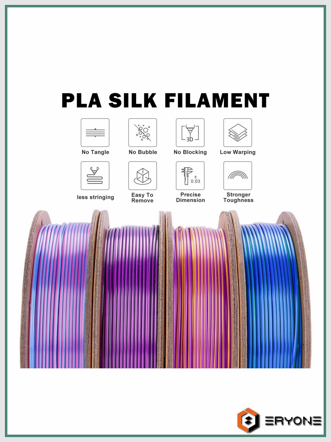 Набор из 4 катушек 0.25 кг пластика PLA Silk Dual Color 1,75 мм (Eryone) разных цветов - Тип 1