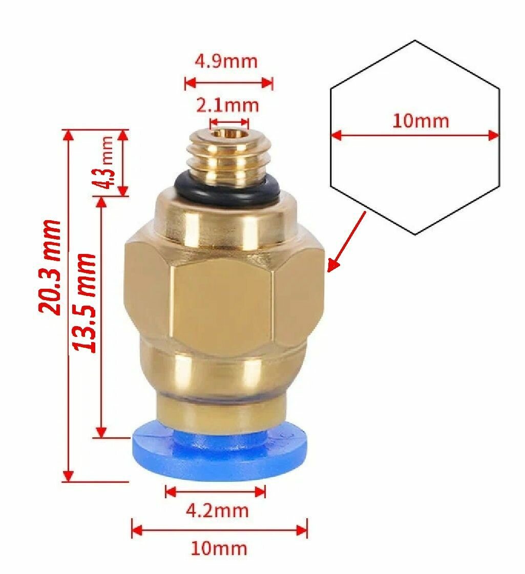 Фитинг PC4-M10 для 3D принтера под тефлоновую трубку 2х4 мм - 1 штука