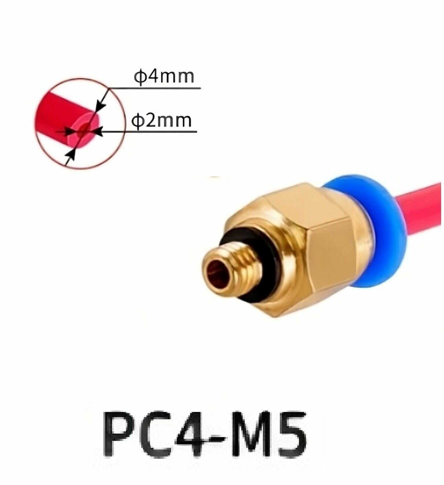 Фитинг PC4-M6 для 3D принтера под тефлоновую трубку 2х4 мм - 1 штука