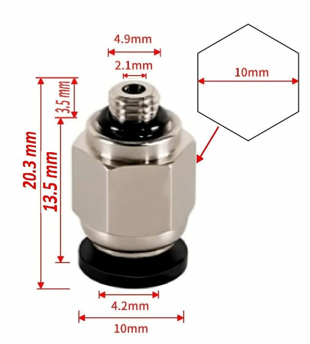 Фитинг PC4-M10 для 3D принтера под тефлоновую трубку 2х4 мм - 1 штука