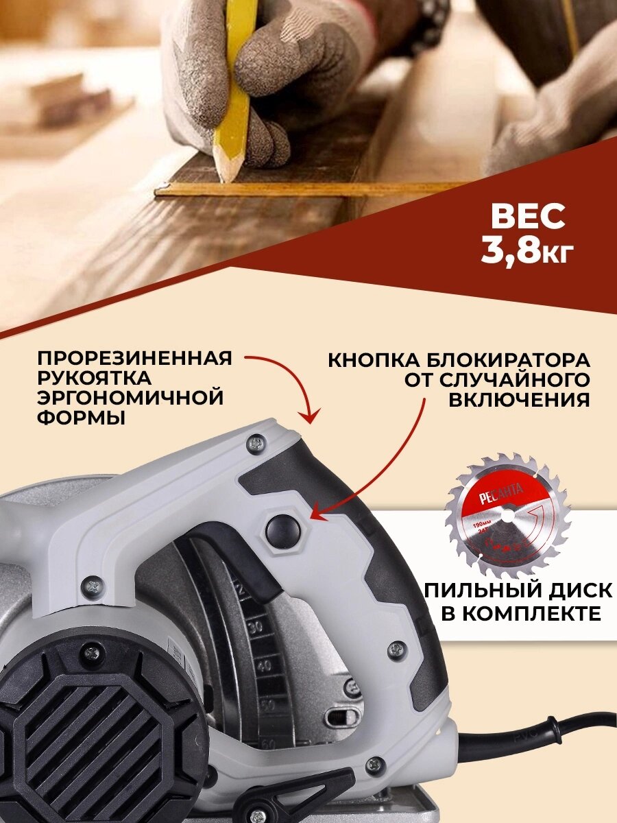 Пила циркулярная сетевая Ресанта ДП-20/190А 75/11/5 интересное: