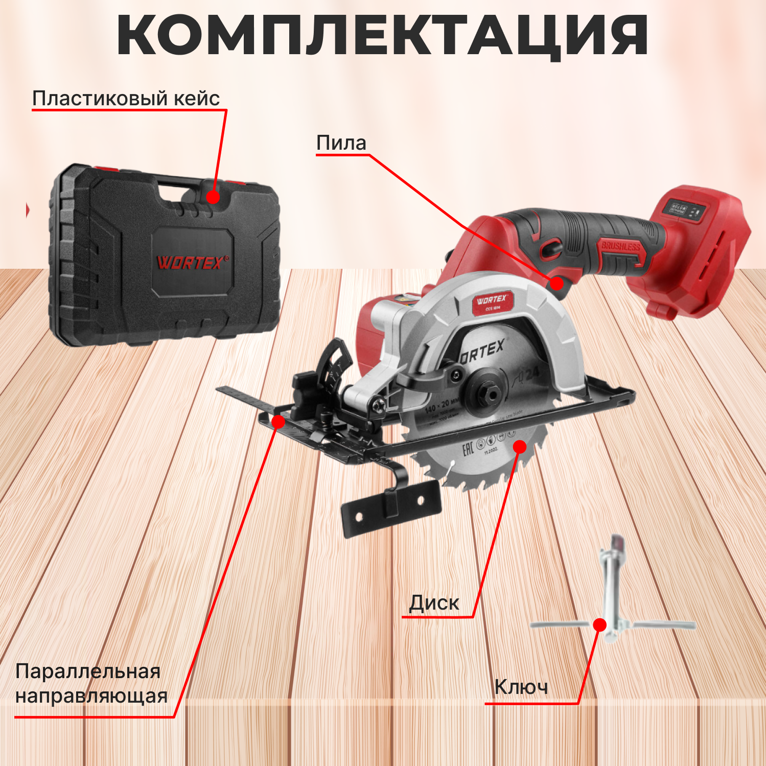Пила циркулярная Wortex аккумуляторная CCS 1814 с акб и з/у ALL1